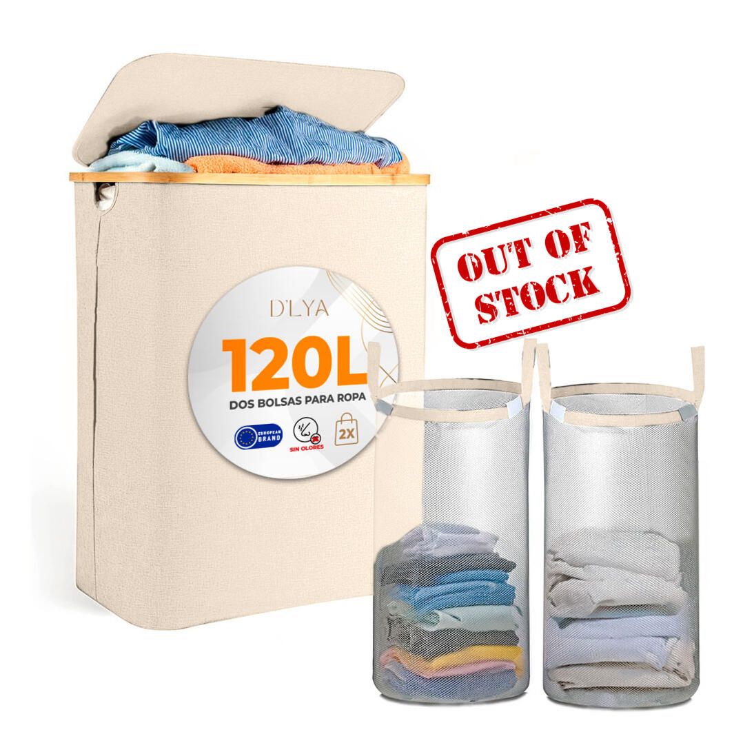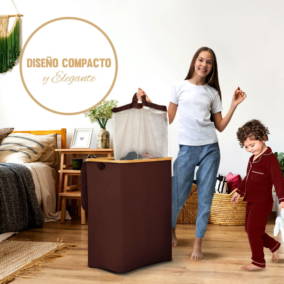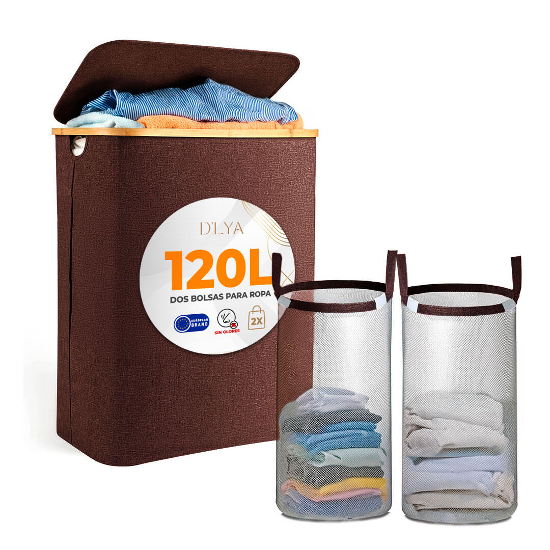 Cesto de ropa sucia plegable tamaño XL (120L), con tapa, asas y doble compartimiento. Incluye bolsas extraíbles y lavables. Liquidación final, envío incluido.