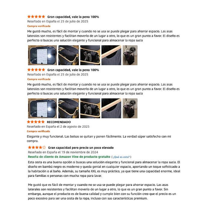 Cesto de ropa sucia plegable tamaño XXL (140L), con tapa, asas y triple compartimiento. Incluye bolsas extraíbles y lavables. Liquidación final, envío incluido.